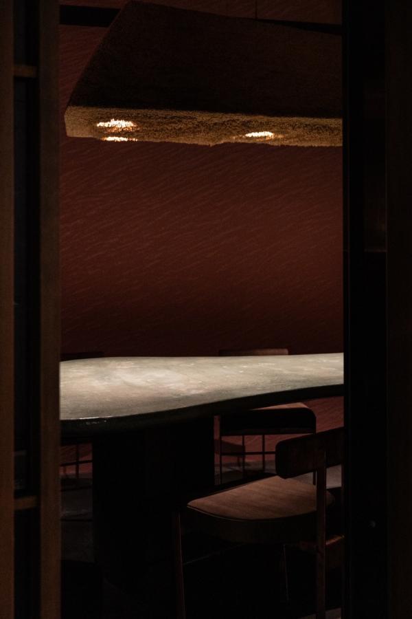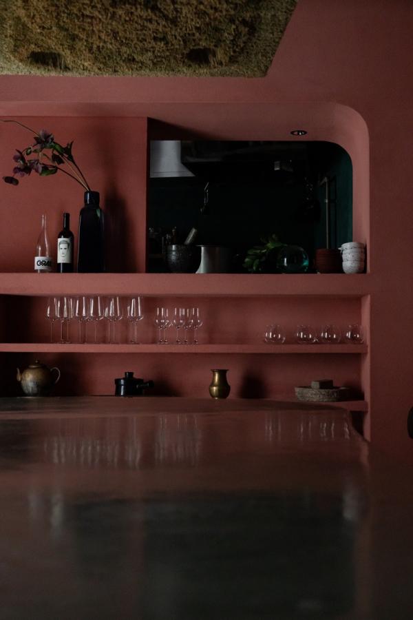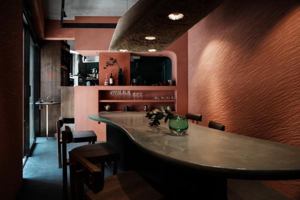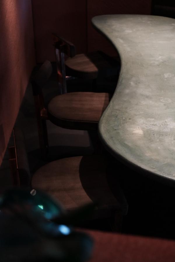 そんなADIの空間づくりの起点は、オーナーの故郷ネパールの原風景であった。スパイスの香り、自宅のキッチンの壁の色、そこでだんらんする人々の気配。これらが交錯する故郷の記憶は、新しいADIの始まりの要素である。ひとつの大きな食卓を囲み、同じ船に乗船した旅人(客)はさまざまな感覚を巡らせ旅に出る。隣り合う客と共に、新しくも懐かしい風景に出会い、想像を超えるかなたへと旅立つ食事である。